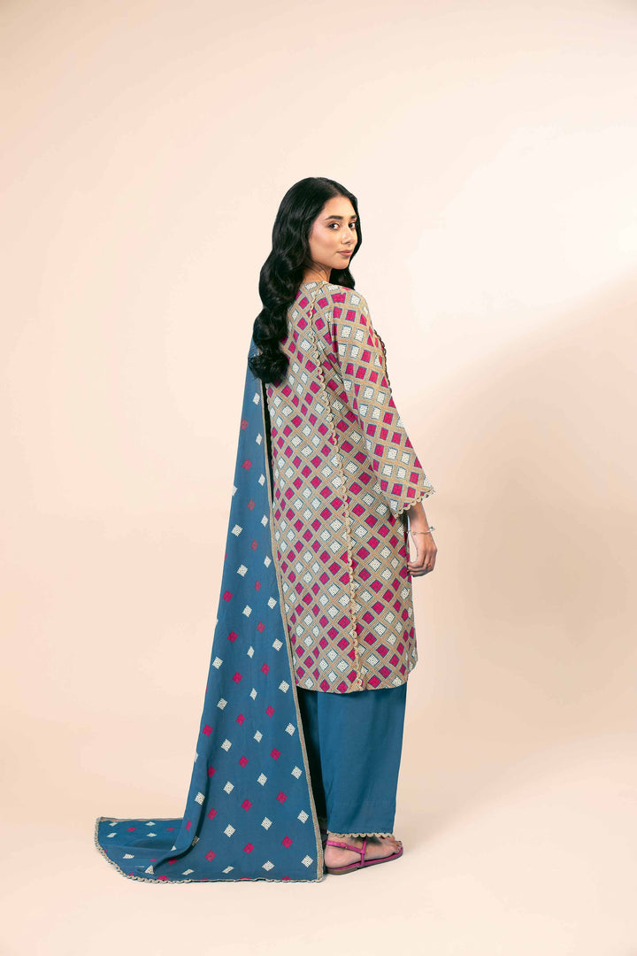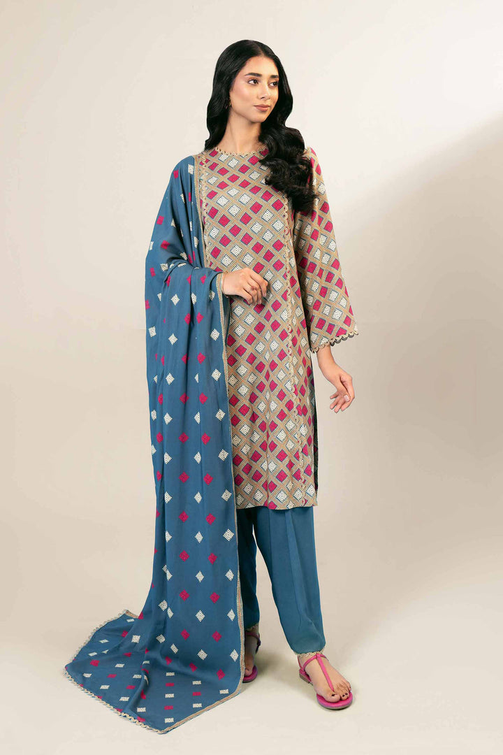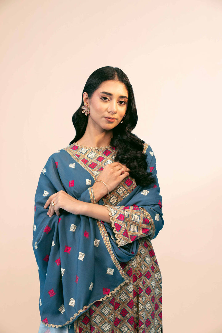 Create a radiant look with this printed three-piece from the latest unstitched winter collection.