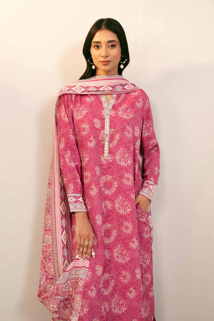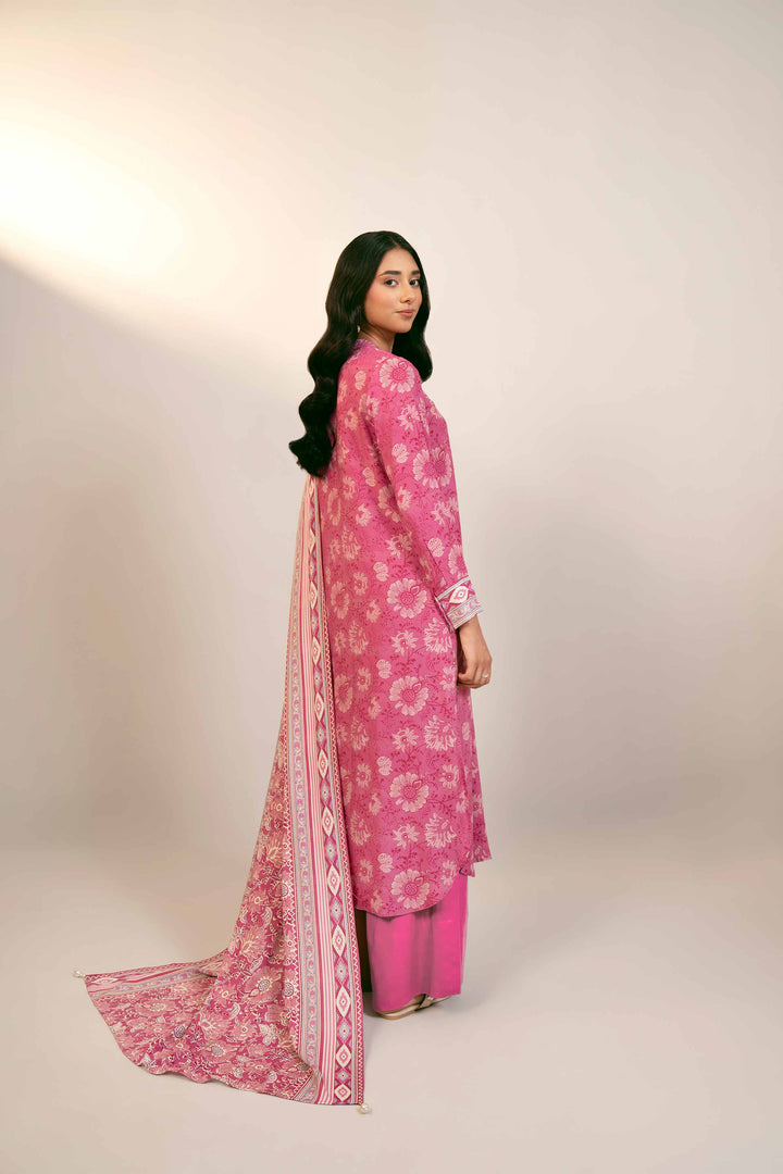 Create a radiant look with this printed three-piece from the latest unstitched winter collection.