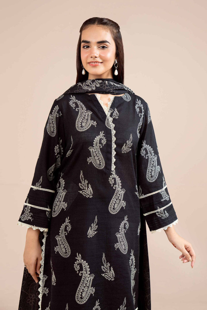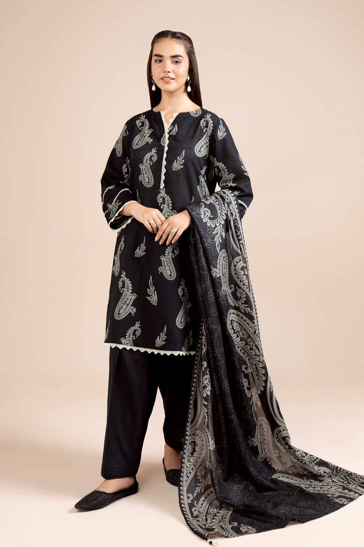 Unlock a world of style with this printed three-piece from the latest unstitched winter collection.