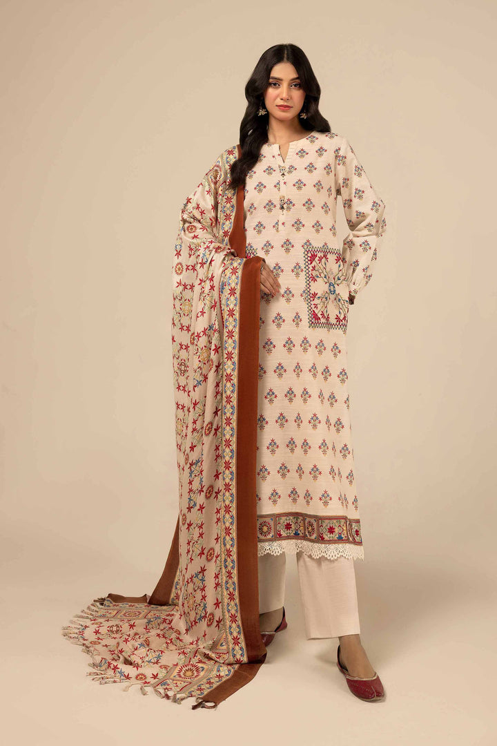 Elevate your style game in printed embroidered three-piece from the latest unstitched winter collection.