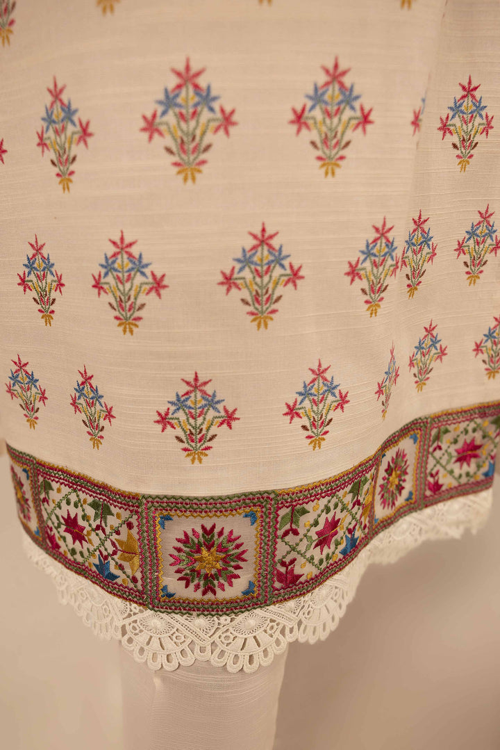 Embroidered Motifs Style Shirt with Shawl and Trousers
