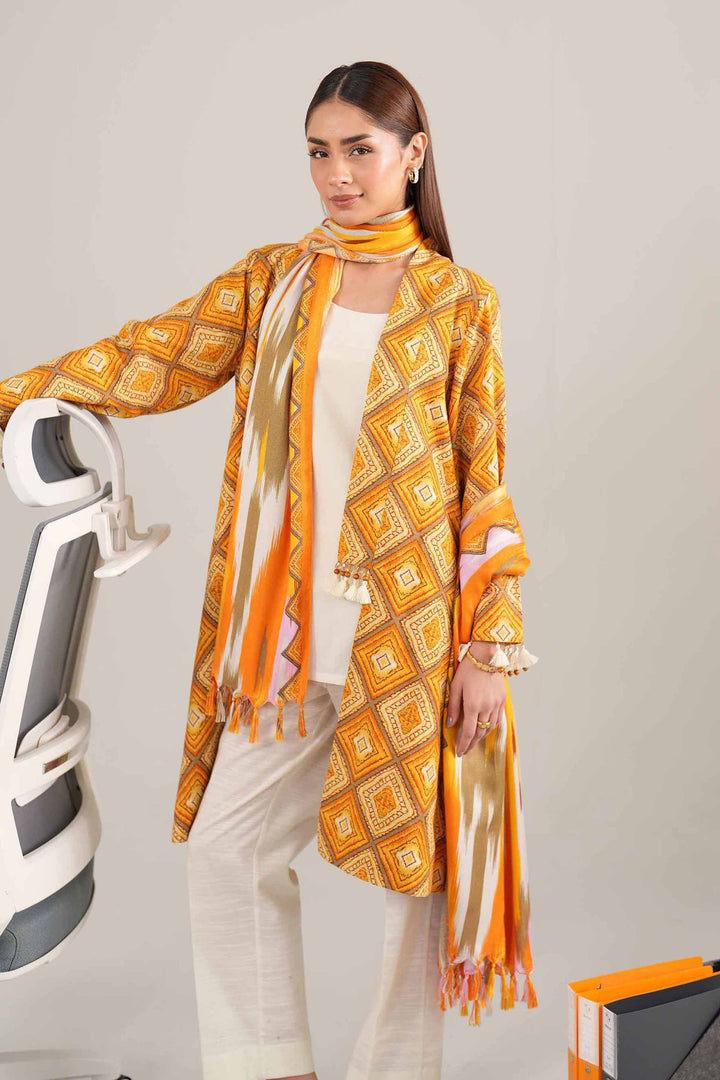 Brighten up your wardrobe with this printed three-piece from the latest unstitched winter collection.