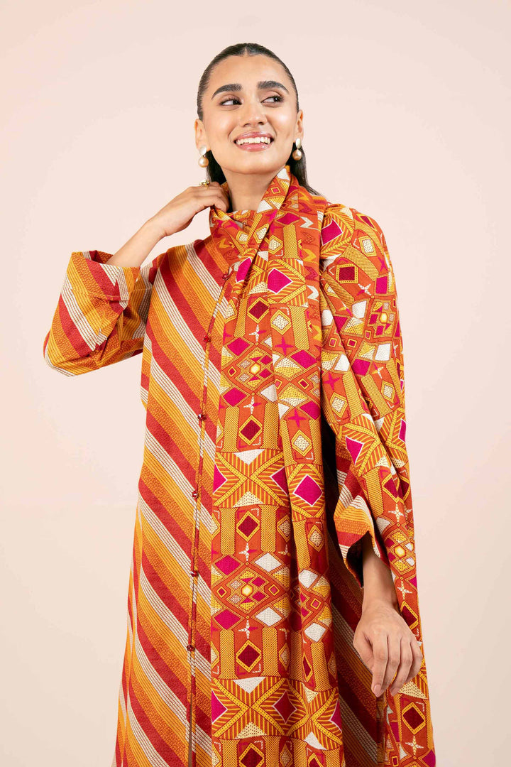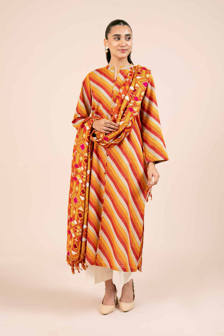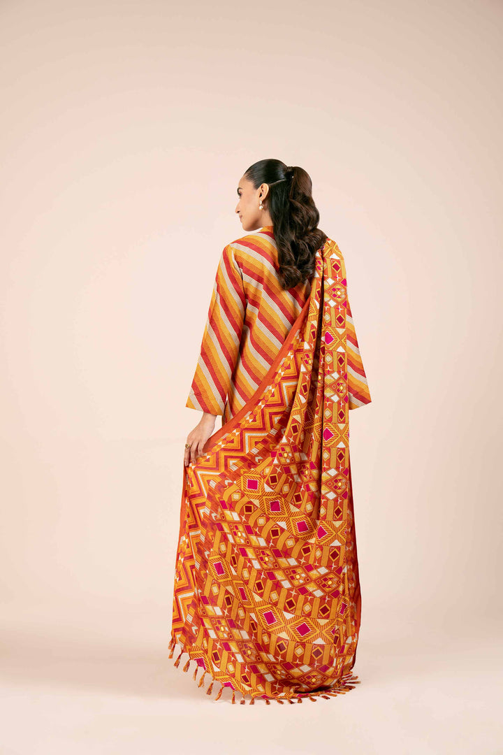 Brighten up your wardrobe with this printed three-piece from the latest unstitched winter collection.