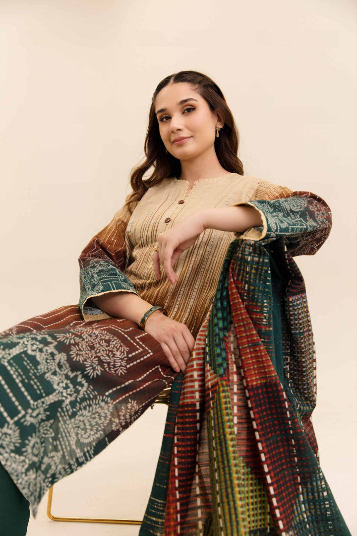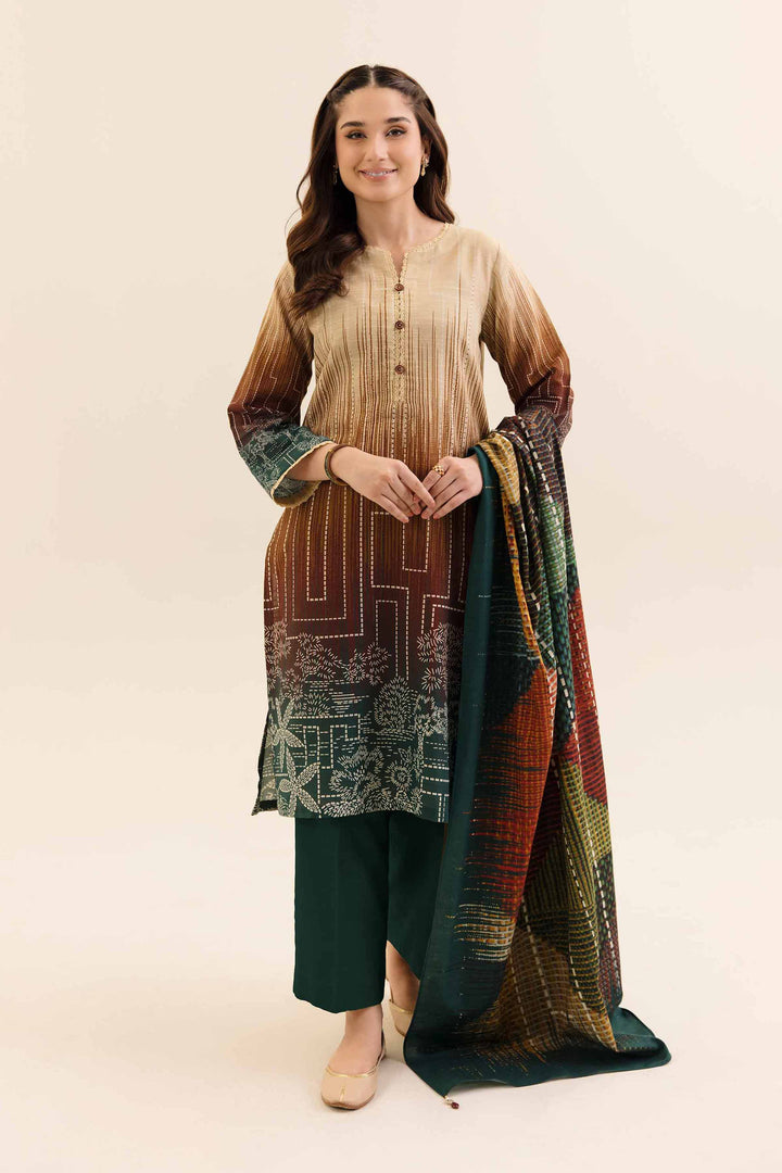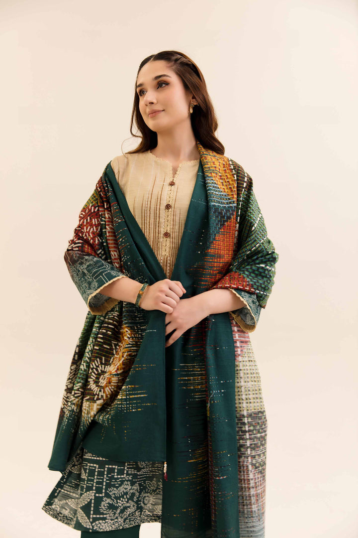 Style your elegant look with this digital printed three-piece from the latest unstitched winter collection.