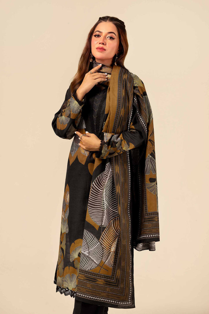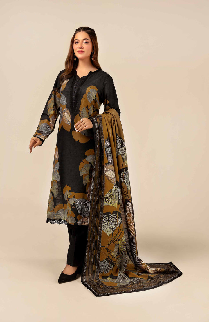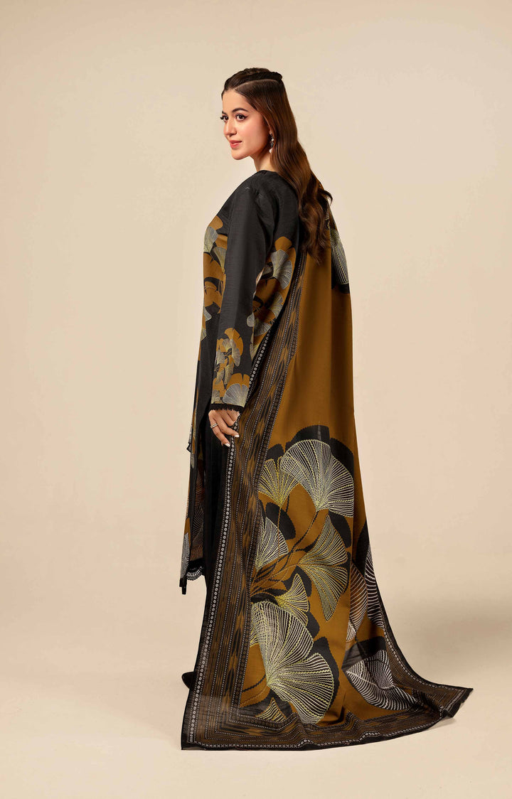 Trend-driven look with digital printed three-piece from the latest unstitched winter collection.
