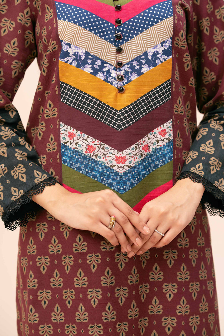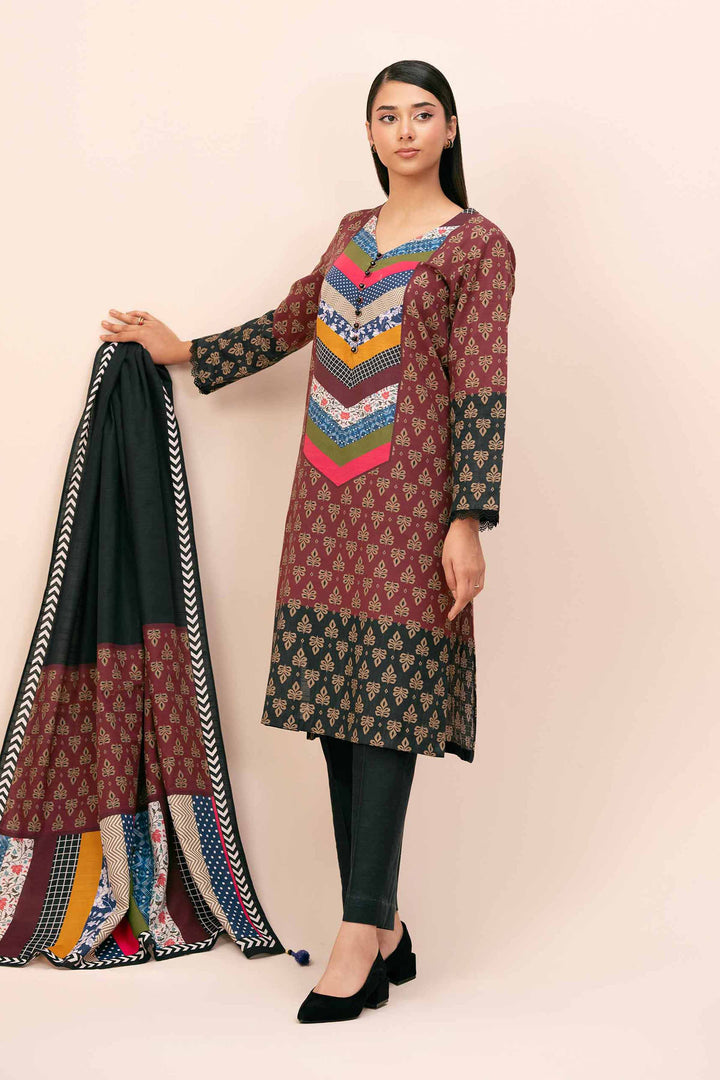 Get a modish look with digital printed three-piece from the latest unstitched winter collection.