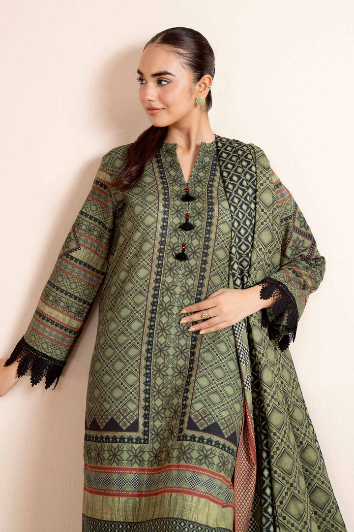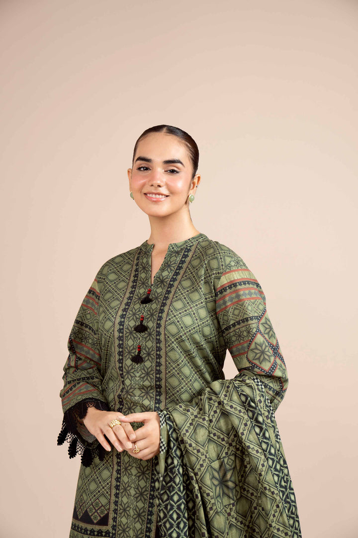 Adorn grace with this digital printed three-piece from the latest unstitched winter collection.