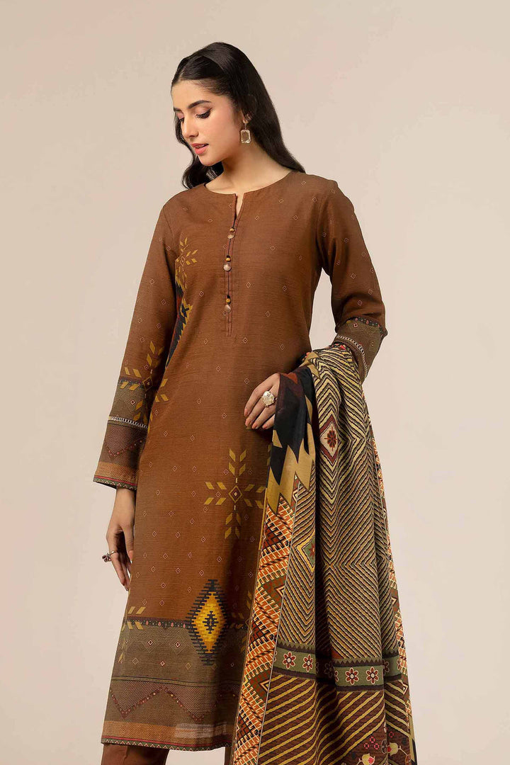 Amaze yourself in this digital printed three-piece from the latest unstitched winter collection.
