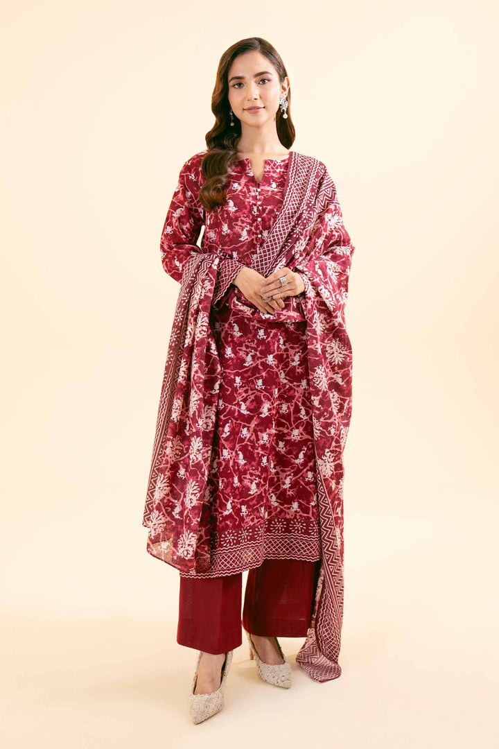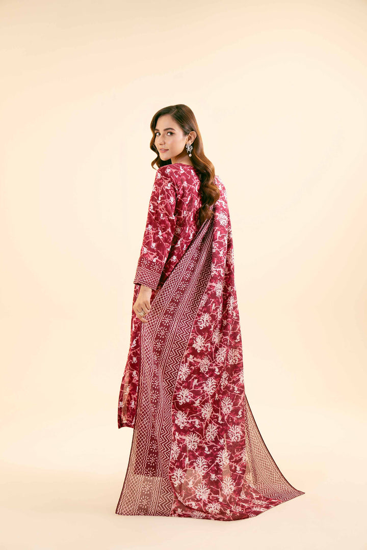 Keep your look effortlessly chic with this printed three-piece from the latest unstitched winter collection.